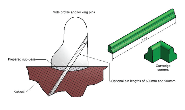 Curvedge is the most popular rubber edge on the market, with over 250,000 lineal metres of Curvedges sold since its introduction. Curvedge provides the perfect safety edging for all kinds of sand and bark filled grounds.